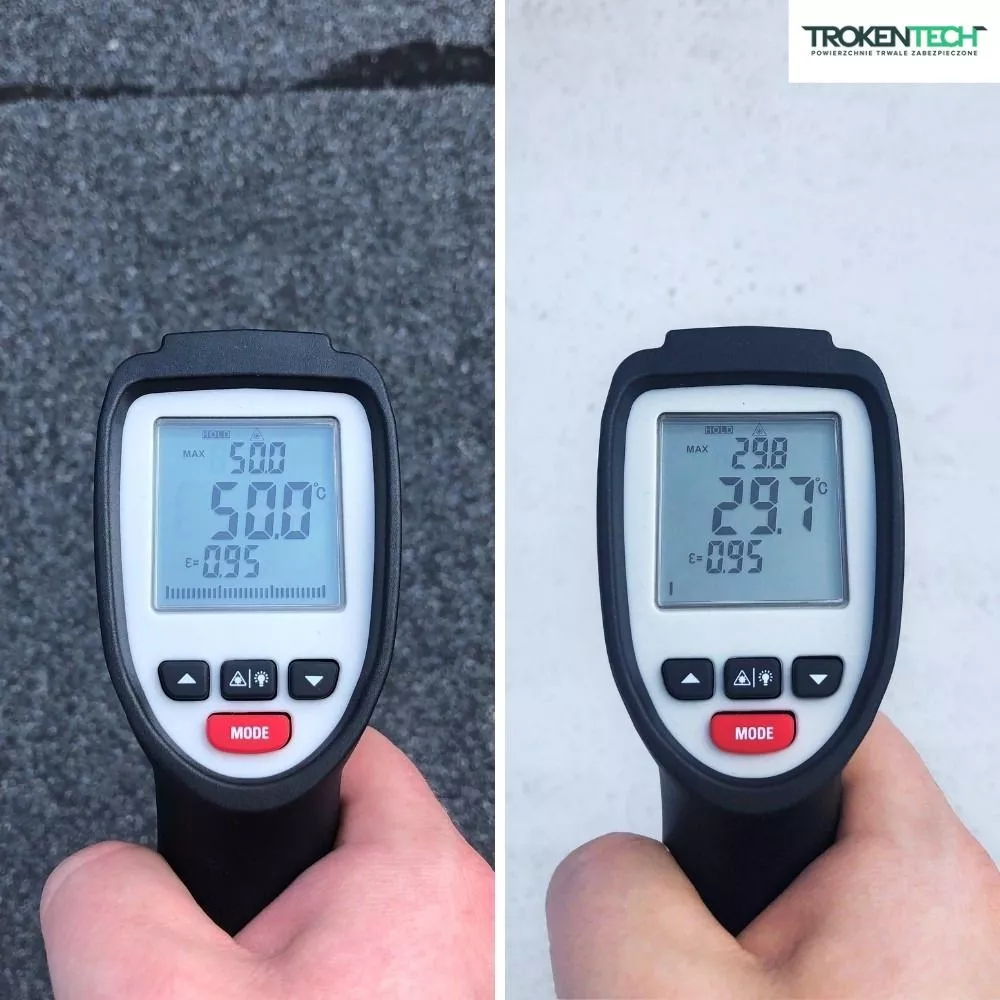 Jasne kolory, takie jak biel i szarość, zapewniają największe korzyści: redukcję nagrzewania powierzchni, lepszą efektywność energetyczną oraz dłuższą żywotność warstwy hydroizolacyjnej. Jeśli jednak projekt wymaga kolorów ciemniejszych, możesz śmiało wybrać czerwony tlenkowy lub mahoniowy brąz – niezależnie od koloru otrzymasz równie trwałą, w pełni wodoszczelną membranę polimocznikową.