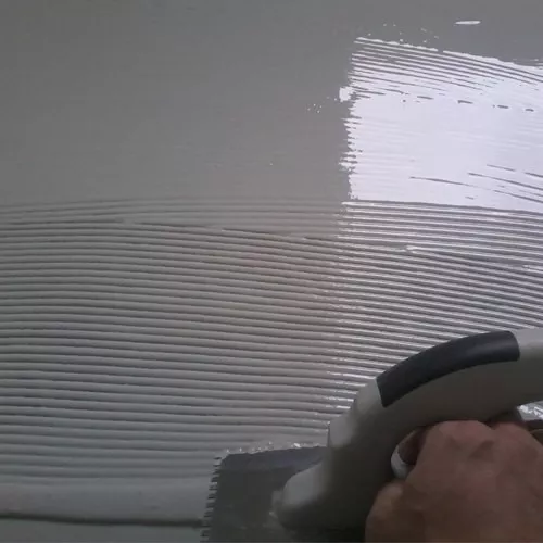 - wylewać na podłoże i rozprowadzać szpachlą zębatą na 1–3 mm
