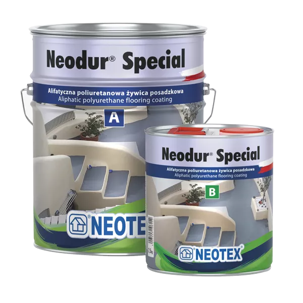 Neodur Special to dwuskładnikowa, wysokiej jakości żywica poliuretanowa przeznaczona do tworzenia odpornych, dekoracyjnych powłok na betonie, metalu, drewnie oraz poliestrze. Charakteryzuje ją bardzo wysoka odporność mechaniczna, chemiczna oraz ochrona przed promieniowaniem UV.